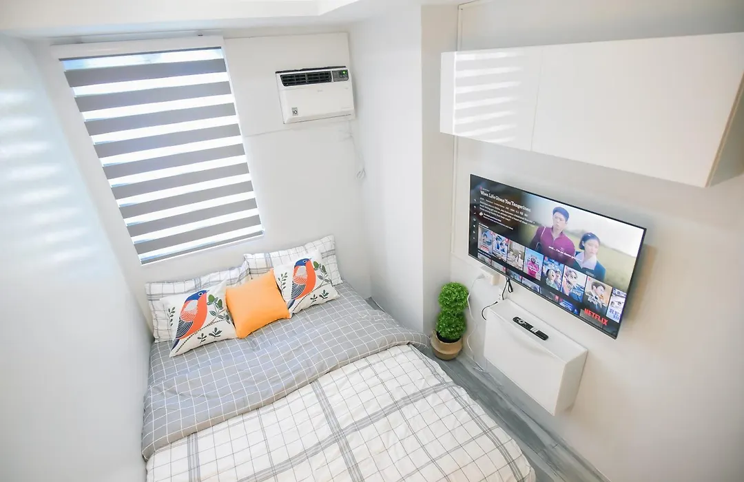 For those who prefer to cook, Brand New Unit Stay For 3 Pax At Mplace Residences provides a kitchenette for preparing homemade meals. Brand New Unit Stay For 3 Pax At Mplace Residences is also nearly a 20-minute ride from Buendia MRT train station.